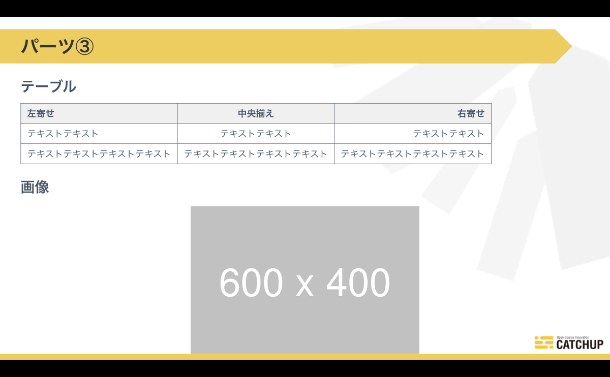 例えば、会社で使うスライド用のCSSを作成して共有すれば、誰でも同じデザインでスライド作成できるようになります。