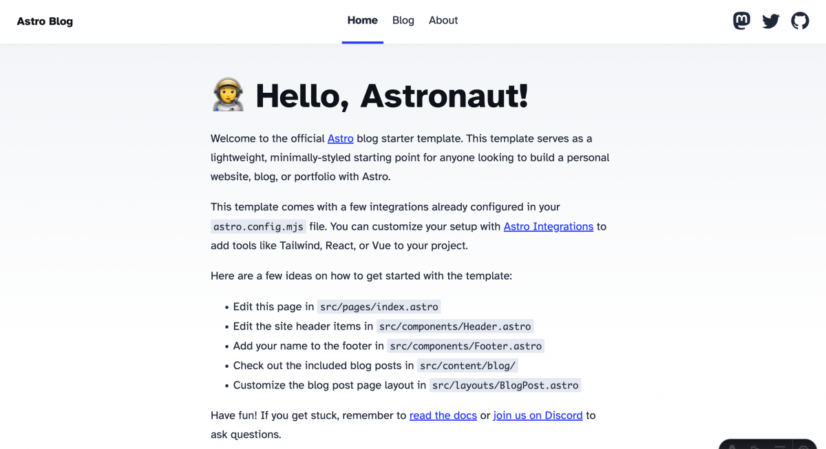 まず、Astroのブログテンプレートを使用してプロジェクトを作成します。