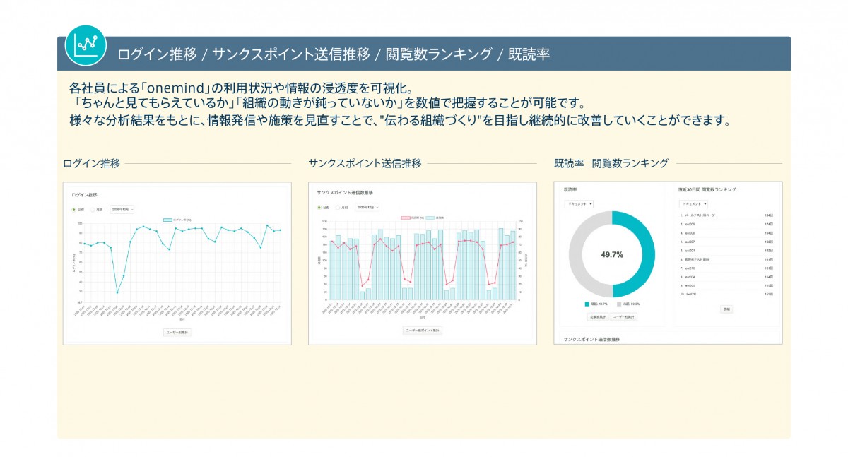 今回、onemind導入後の利用効果をより実感しやすくするため、分析機能を追加開発しました。